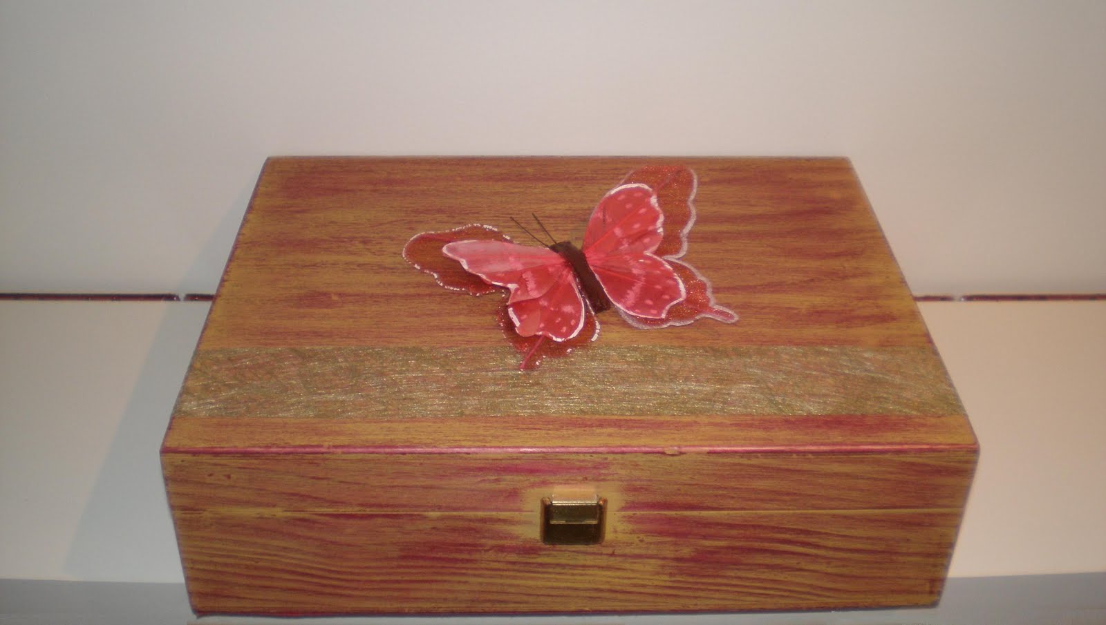 Escrever na tampa e nas laterais da caixa foi um trabalho de paciência e precisão para que as letras ficassem bonitas, direitas e o mais parecidas possível com o tipo de letra usado no convite.