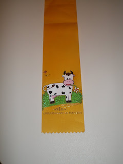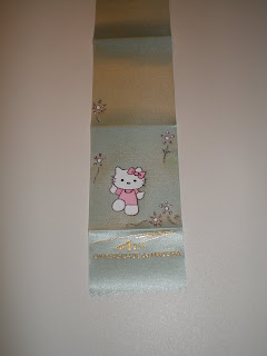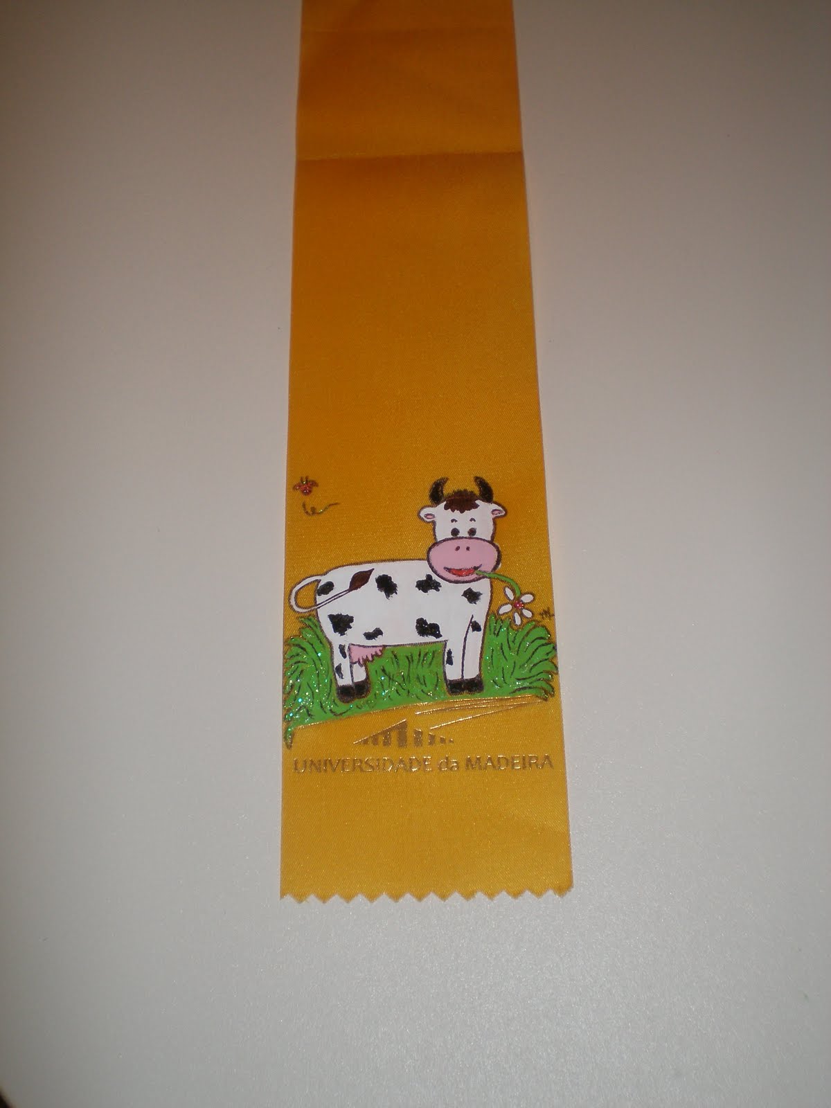 Fico contente por se ter lembrado de mim para lhe personalizar as fitas, mesmo muito contente! Pediu-me então para desenhar uma vaquinha e uma Hello Kitty (sem desconfiar que eu estava a pintar uma caixa também com a Hello Kitty, mas para ela!!).