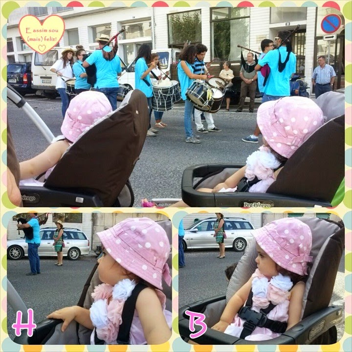 Ora cá estão as minhas meninas a assistir ao cortejo, aqui no início, com muita atenção à música dos tambores e gaitas de foles - não gostassem elas muito de música!