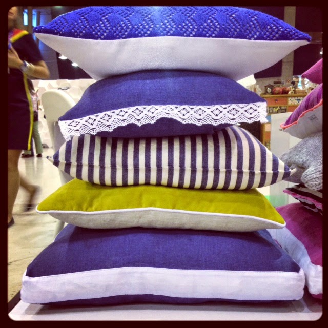 Encosta-te a mim - é uma marca portuguesa de criação e design de almofadas, almofadões, puffs, "tudo para nos encostarmos" como me disse uma das duas sócias (Rita Castelo Branco e Susana Atalaya) durante a feira. Nas suas criações apostam na produção nacional, quer ao nível da mão de obra, como dos materiais (linho, algodão e lãs): todas as peças são trabalhadas artesanalmente por costureiras portuguesas e algumas aplicações são feitas com elementos que fazem parte da nossa história, como rendas e tricô. O resultado final são almofadas lindas, muito coloridas, e de muito bom gosto, foi o que vi no stand da Encosta-te a mim!
