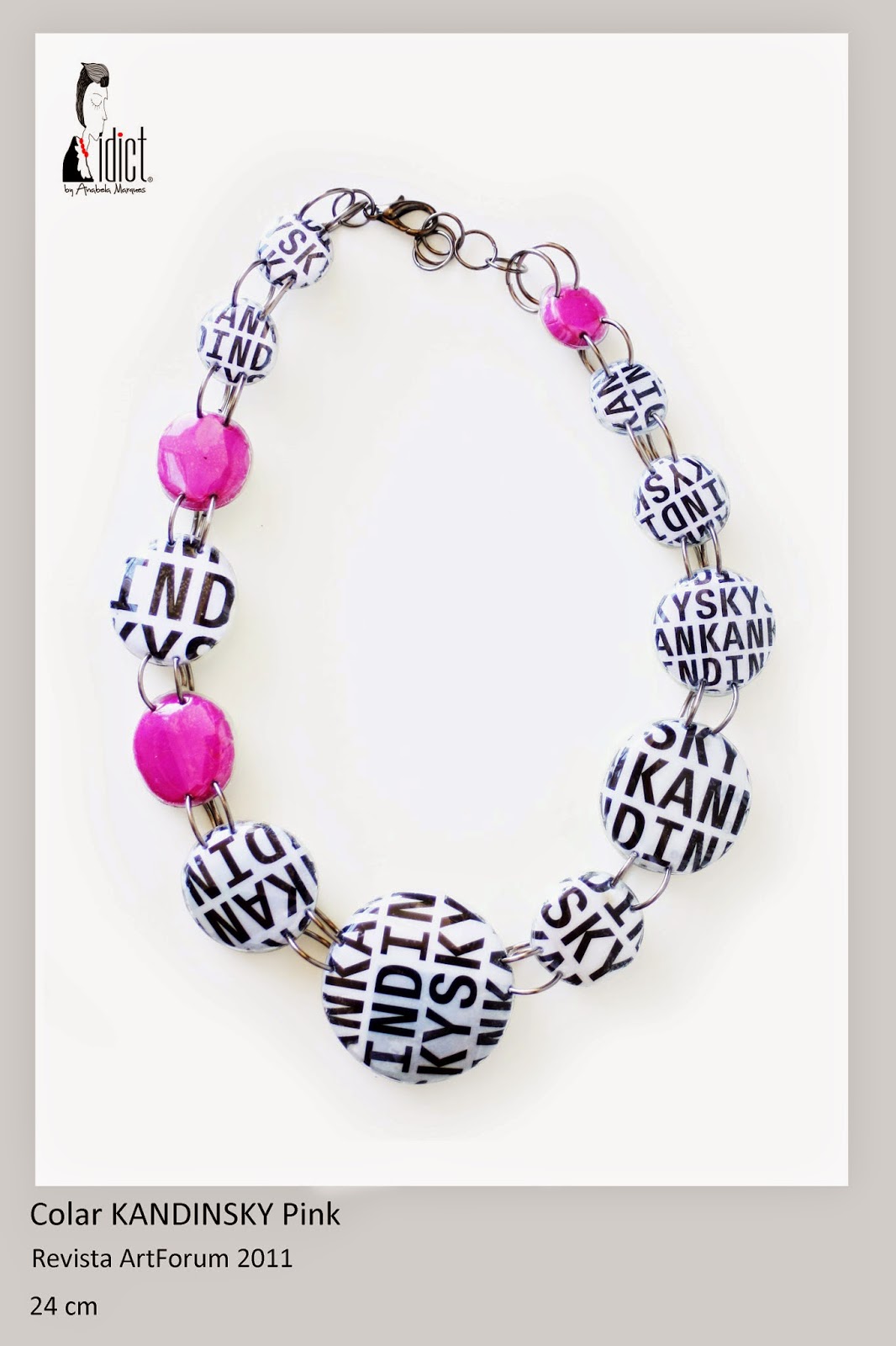 Idict by Ana Marques - quando cheguei a este stand e vi os colares que ali estavam expostos, achei as peças muito vistosas e bonitas, mas à primeira vista não percebi de que material eram feitas. Umas pareciam-me ser de vidro pelo brilho que tinham, outras pareciam pedras próprias para usar em bijuteria, mas a Ana Marques, ao ouvir os comentários de quem estava por ali (os meus e não só) logo explicou o conceito do projeto e quais os materiais usados. Esta é uma marca de joalharia sustentável, uma vez que as peças são criadas a partir de material reutilizado (plástico PET de garrafas e edições antigas de revistas de arte), e original / exclusiva pois todas as peças são únicas e diferentes entre si, não há repetição de imagens.